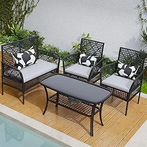 - Low-maintenance & stylish with washable cushion covers and a vibrant blue finish—perfect for porches, balconies, gardens, and sunrooms.