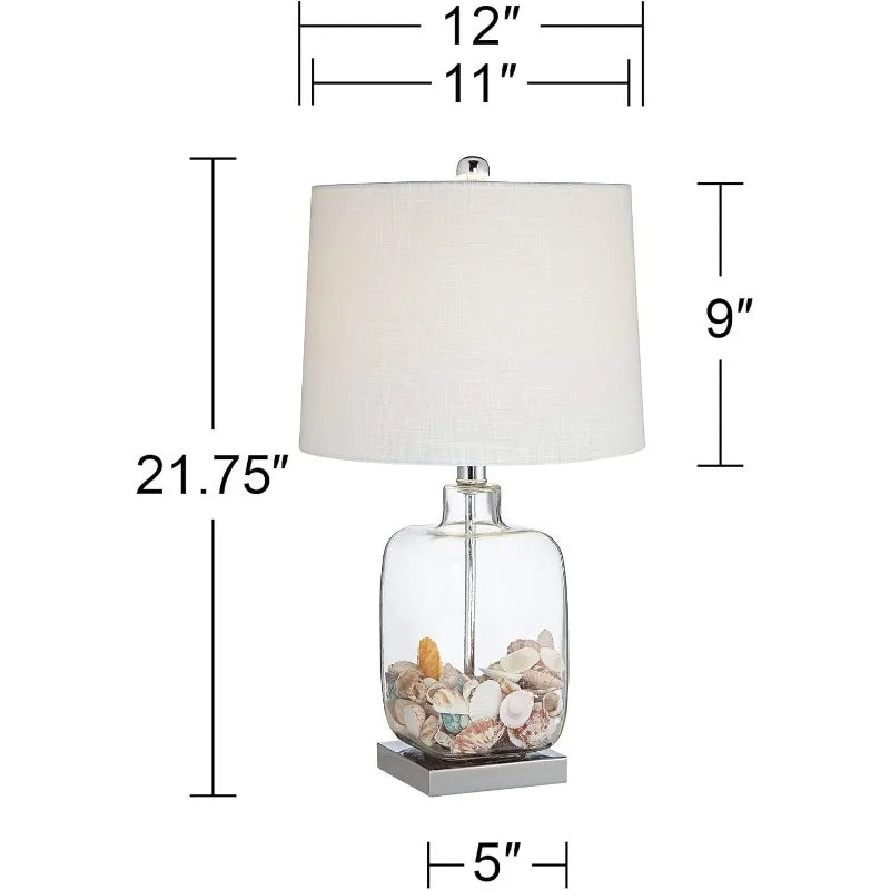 Bring the breezy charm of the coast into your space with the Coastal Table Lamps Set of 2. These lamps pair a brushed steel base with clear glass accents and a white drum shade, delivering a timeless coastal aesthetic that elevates living rooms, bedrooms, and outdoor patios alike.