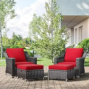 Transform your outdoor living space with the 4 Piece Wicker Patio Furniture Set With Chairs And Ottomans—a minimalist modern, L-shaped ensemble designed for comfort, durability, and easy care.