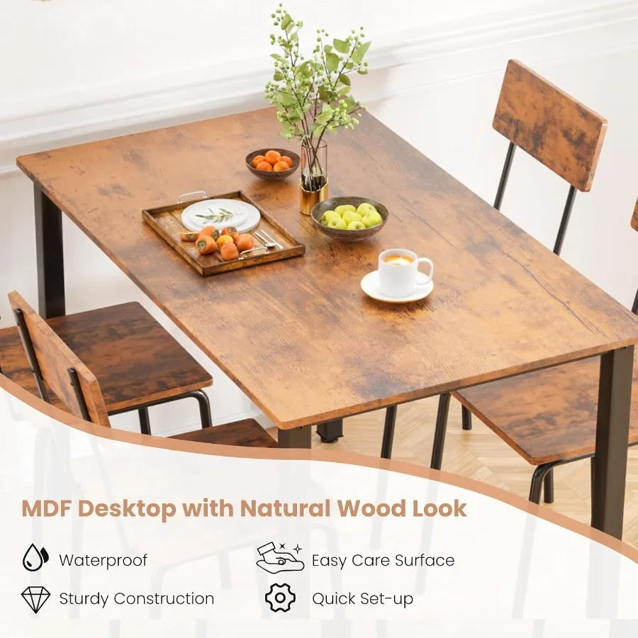 - Set Composition: 5-piece set (table + four chairs) designed for four diners