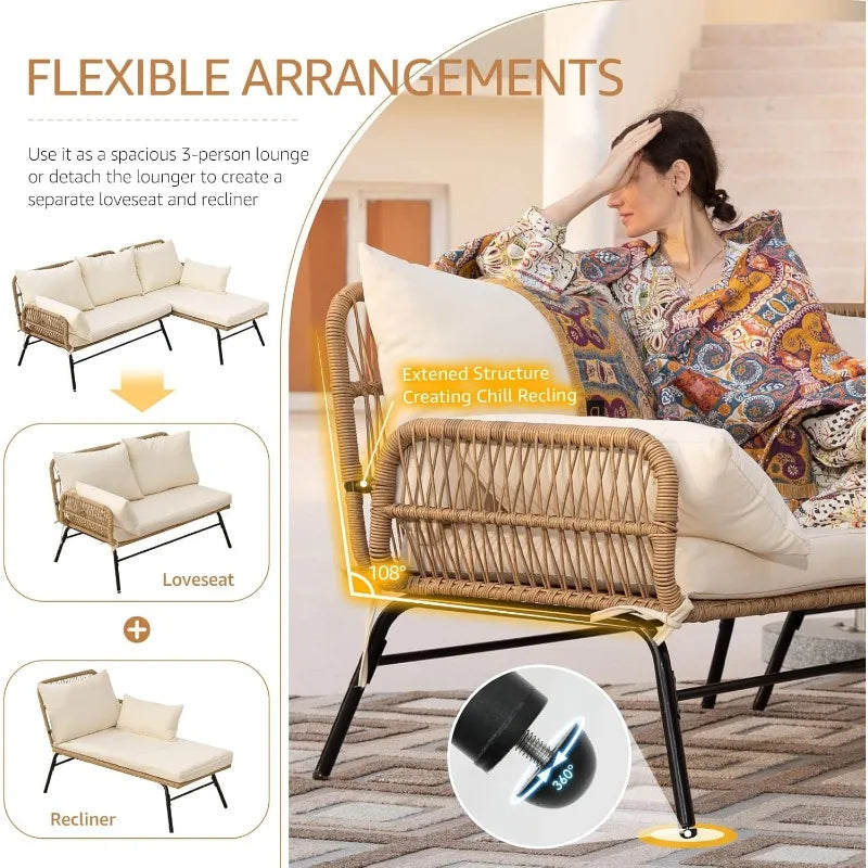 - Flexible layout & strength: The L-shaped design adapts from a spacious three-seat lounge to a loveseat/daybed setup; each piece supports up to 500 lbs for peace of mind.