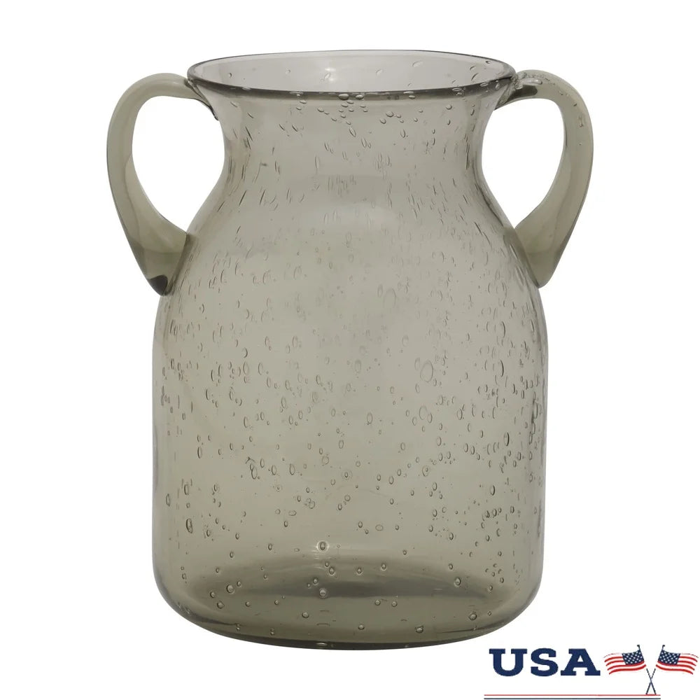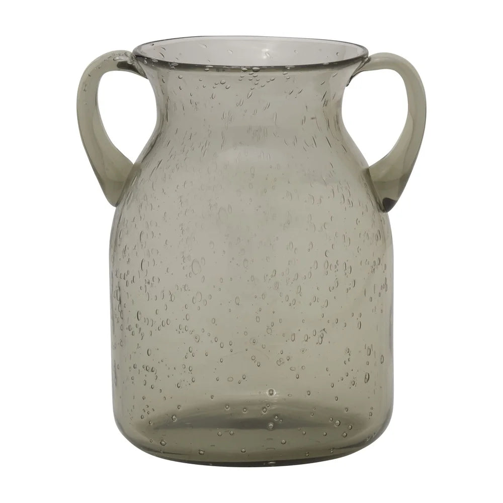 Green Handled Glass Vase is a simple, elegant centerpiece that brings a touch of timeless style to any room. The gorgeous green hue and clean, modern silhouette elevate decor in living rooms, bedrooms, kitchens, bathrooms, and entryways. Use it to showcase real or faux flowers, dried stems, feathers, or other decorative arrangements for a versatile focal point.