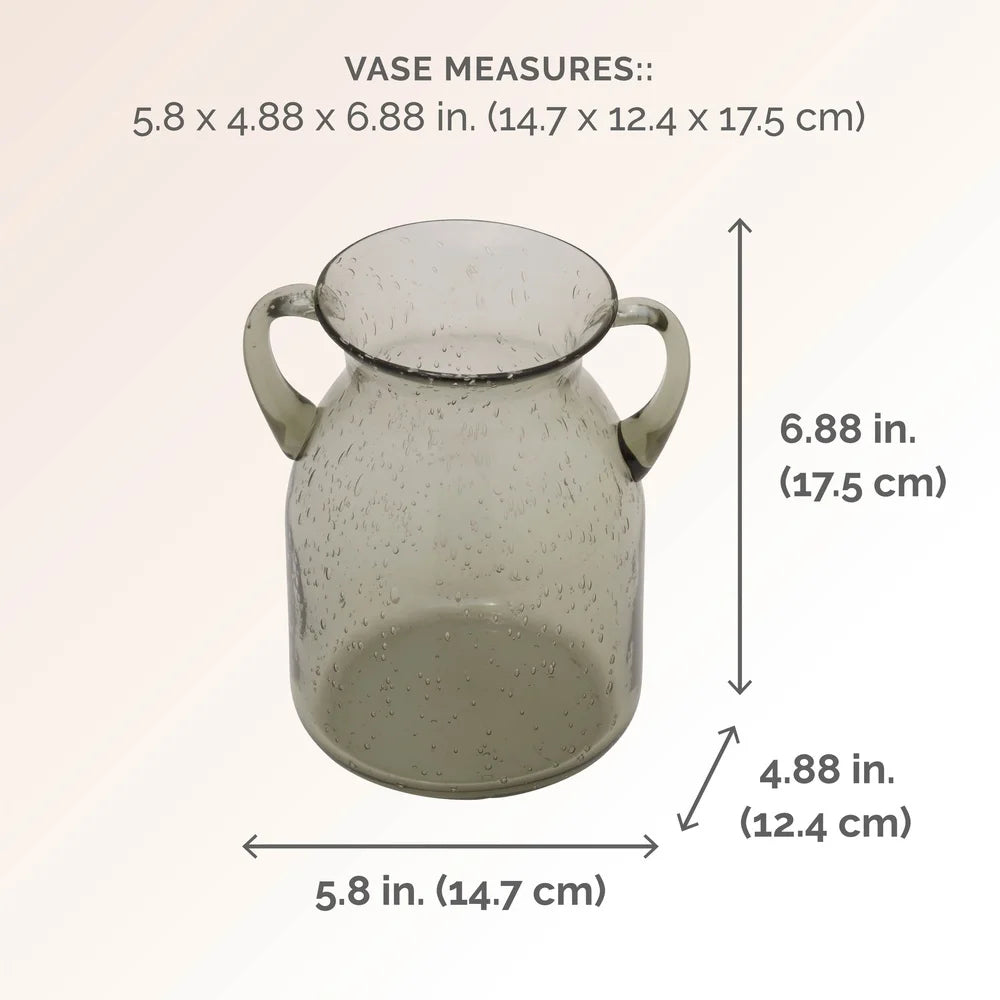 Green Handled Glass Vase Elegant Home Decor Floral Arrangement Display For Living Room Bedroom Kitchen Bathroom