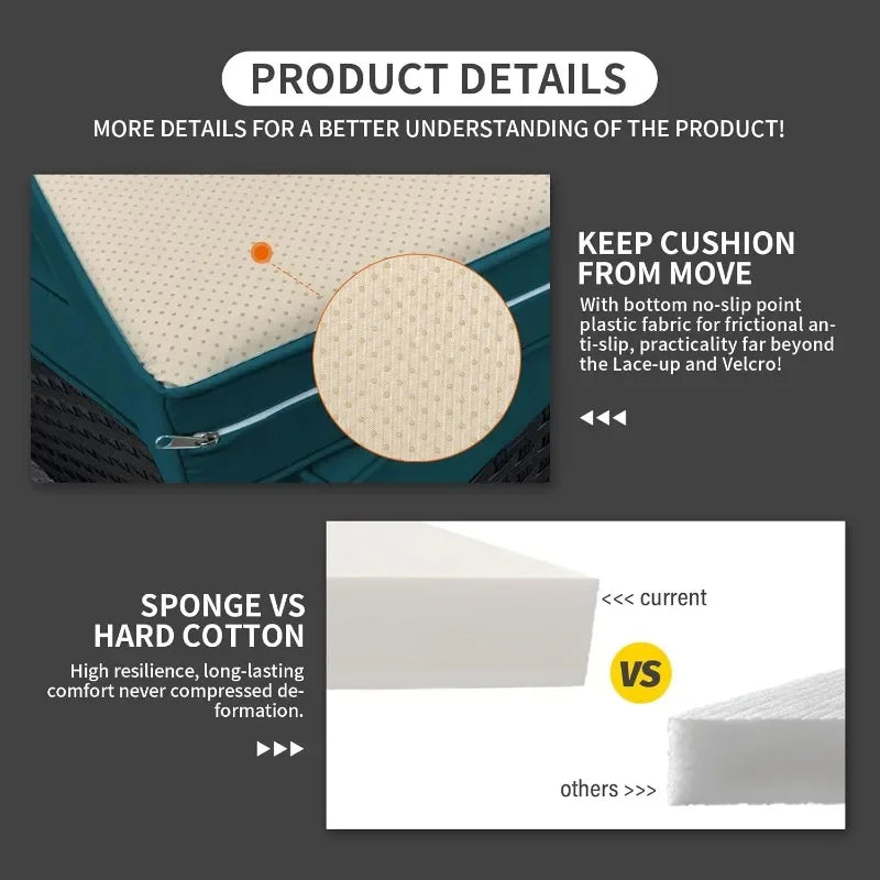 - Comfortable and non-slip cushions: thick 4-inch seats use high-resilience sponge for lasting support, with bottom anti-slip dotted plastic fabric to stay securely in place; back cushions are filled with PP cotton for cloud-like comfort that lasts.