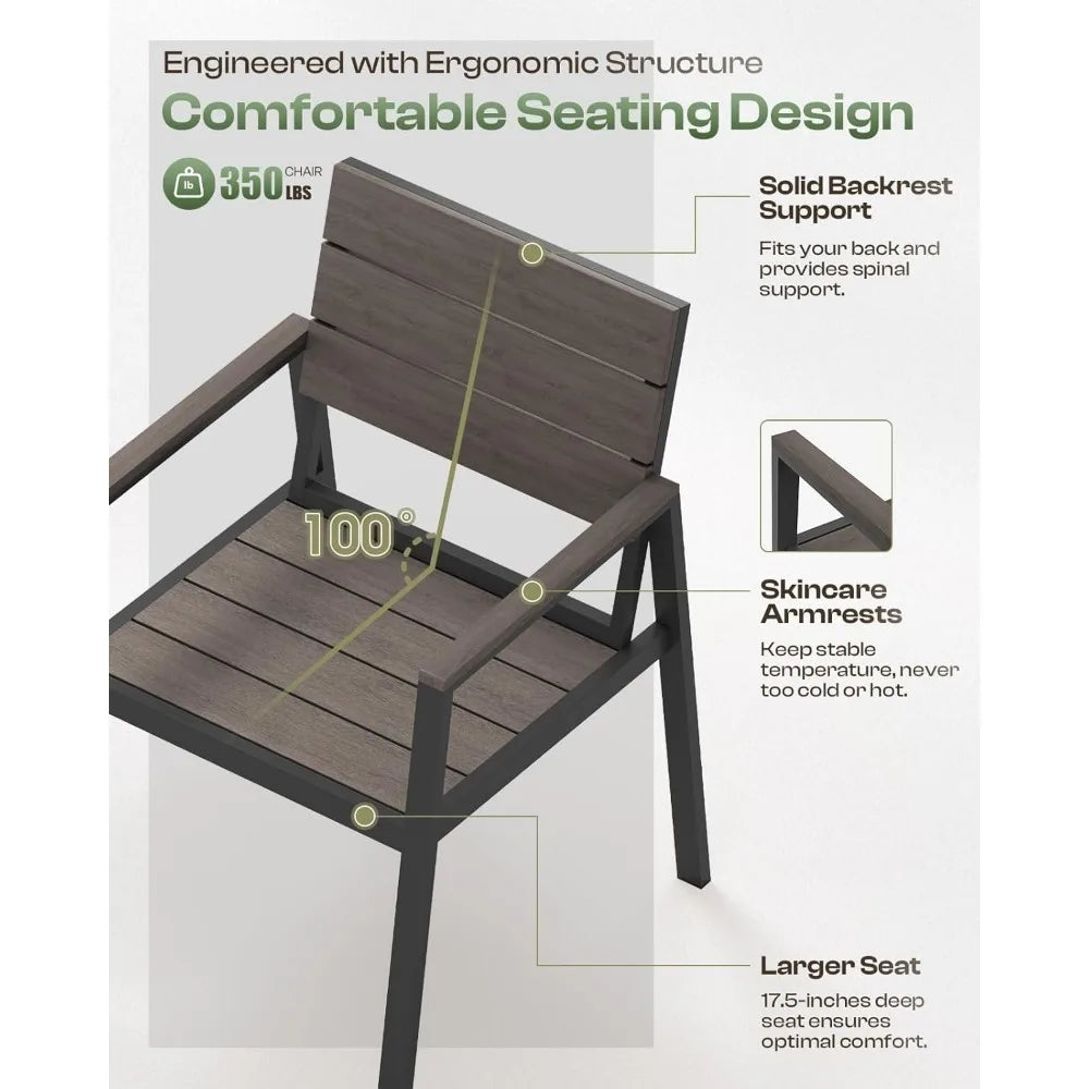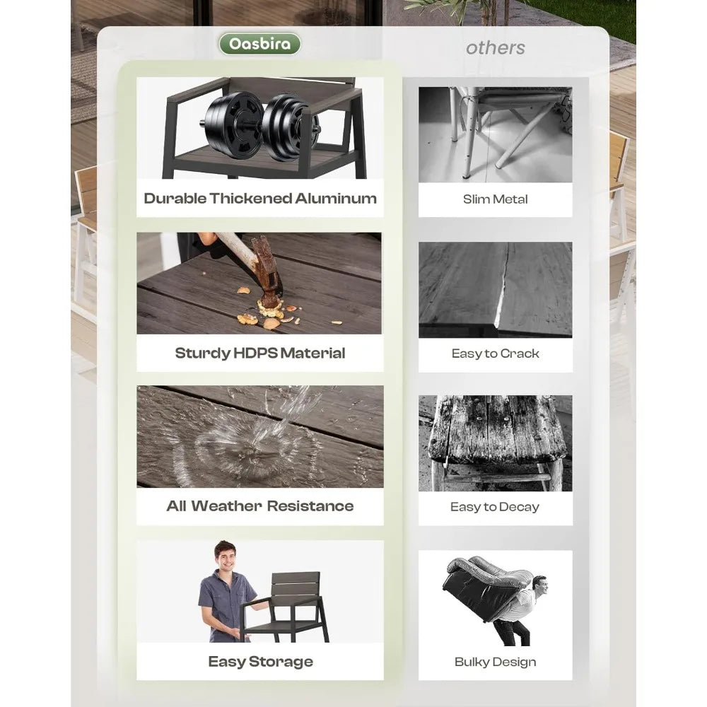- Roomy, adaptable design: Perfect for patios, balconies, gardens, or even indoor space. Lightweight aluminum and HDPS combo makes moving and rearranging effortless.