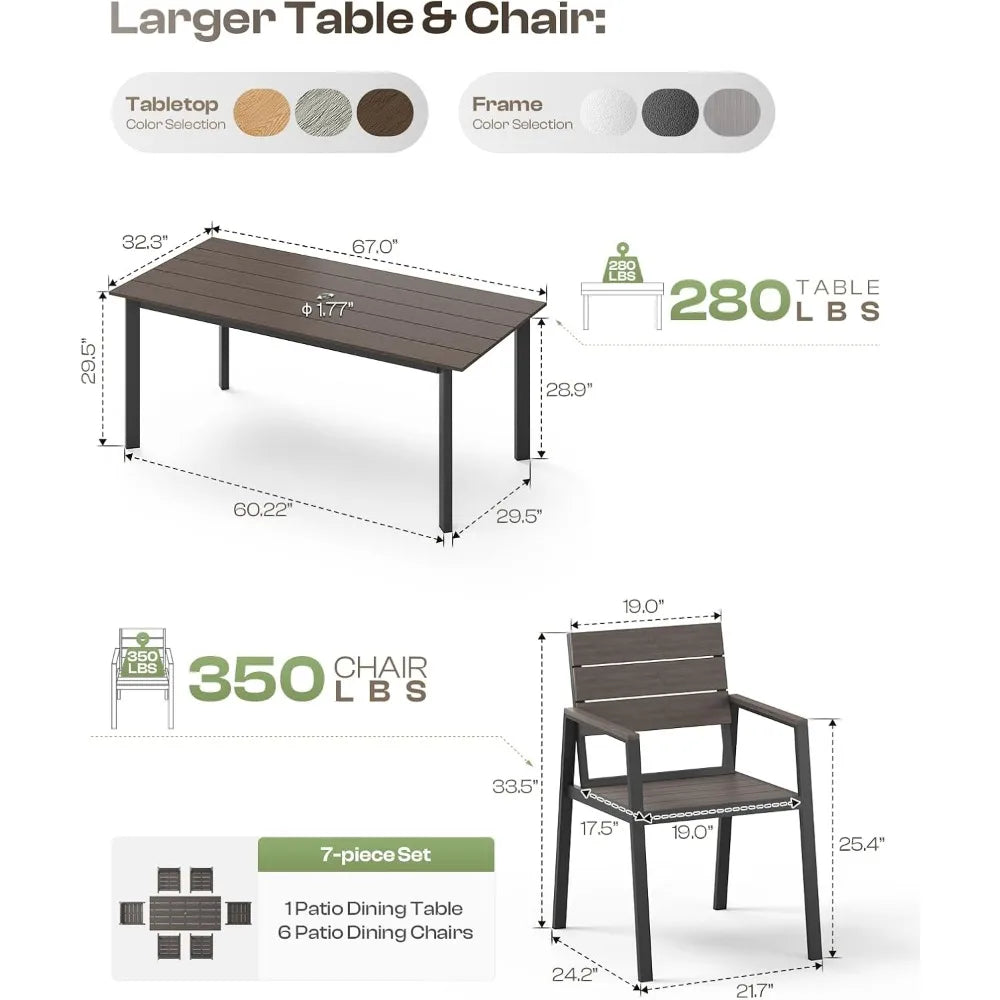 Outdoor Patio Dining Table Set 7 Piece Aluminum And HDPS Weather Umbrella Hole